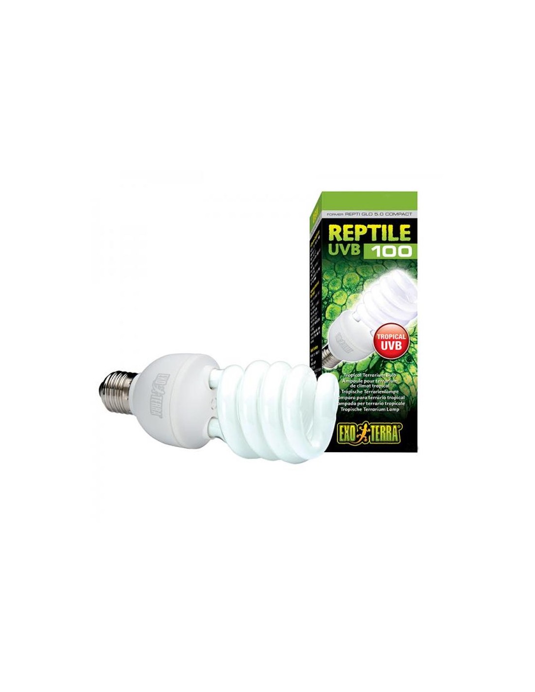 La Exo Terra Repti Glo 5.0 ha una moderata emissione UVB simile agli ambienti ombrosi come la foresta pluviale e altri luoghi tropicali. I rettili che vivono in questi habitat ricevono meno radiazione UV a causa dei vari elementi climatici che impediscono l'esposizione degli animali alla luce solare diretta come l'umidità che trattiene una parte dei raggi UV.
