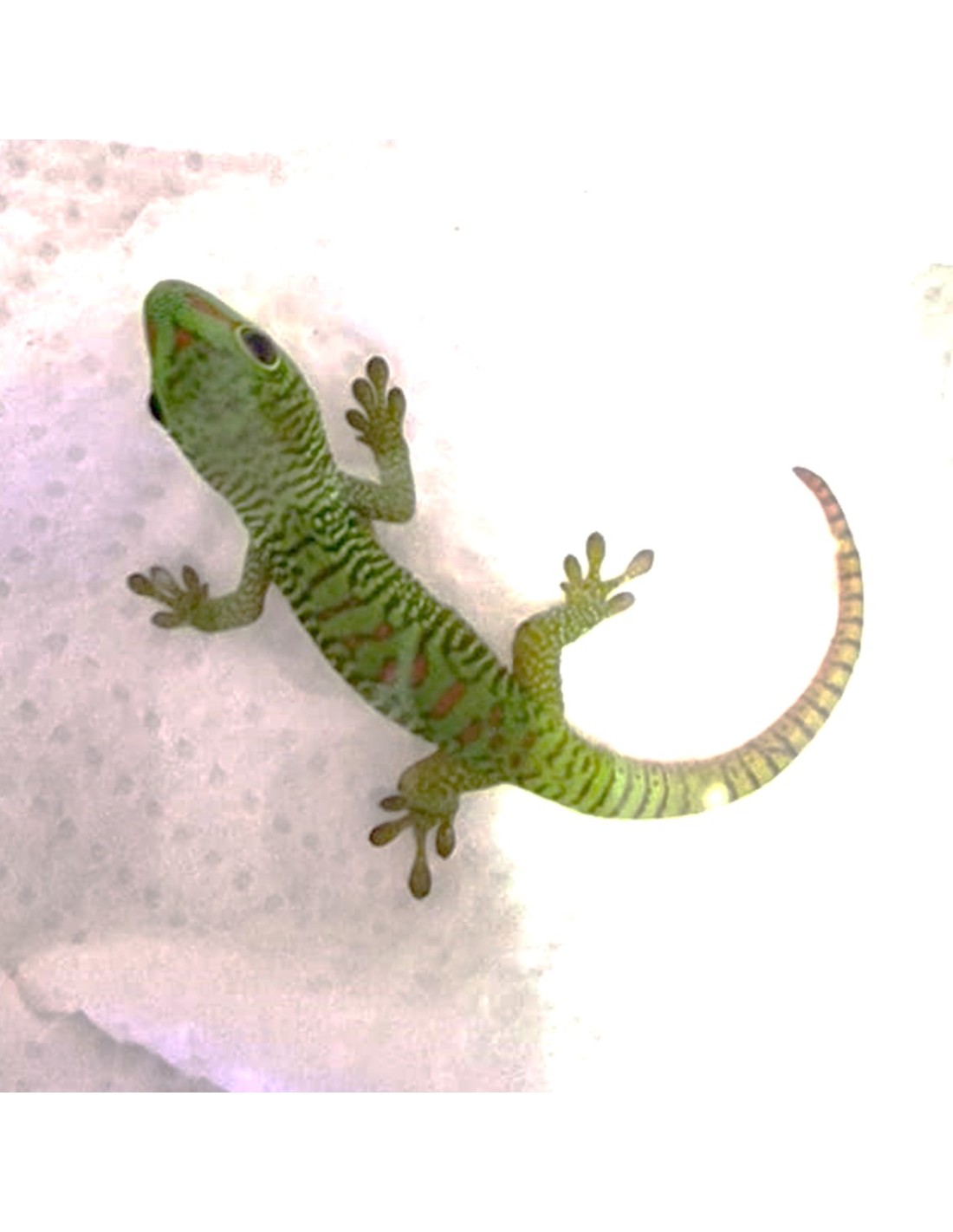 Phelsuma grandis è un grande geco diurno originario del Madagascar, famoso per la sua brillante colorazione verde con macchie rosse. È una delle specie più grandi del genere Phelsuma, attiva di giorno, arboricola e molto visibile nel terrario. Apprezzato dagli allevatori per la sua bellezza e comportamento vivace, necessita di un ambiente caldo, umido e ricco di vegetazione verticale.