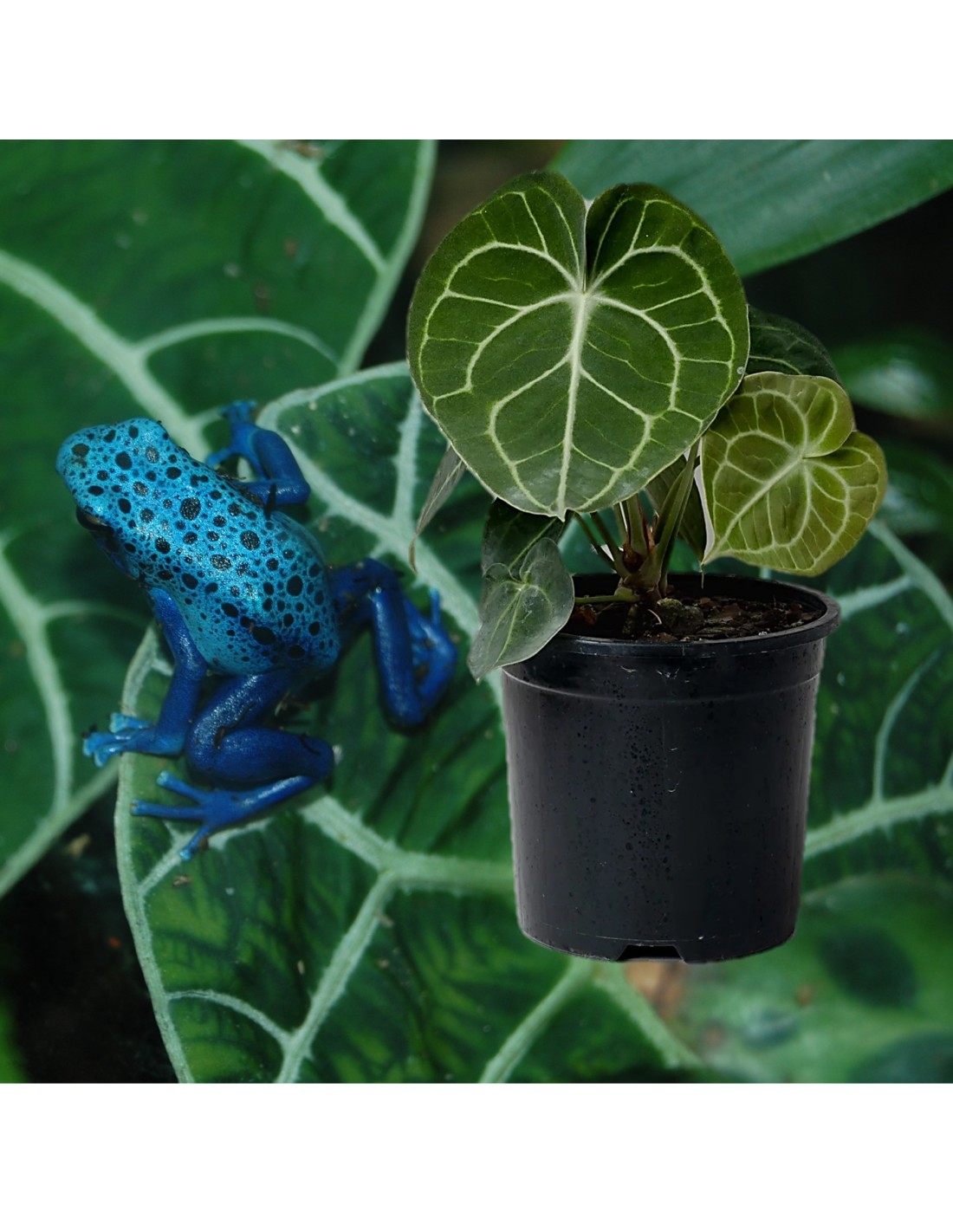 L’Anthurium clarinervium è una pianta epifita/litofita ideale per terrari tropicali umidi. Grazie alle sue foglie a cuore, rigide e vellutate, funge da eccellente piattaforma di sosta e rifugio per piccoli anfibi e gechi arboricoli. Esteticamente imbattibile per il contrasto tra il verde scuro e le venature argenteo-bianche, è una pianta a crescita lenta che non invade lo spazio vitale degli animali, richiedendo però un substrato estremamente drenante per evitare il marciume radicale.