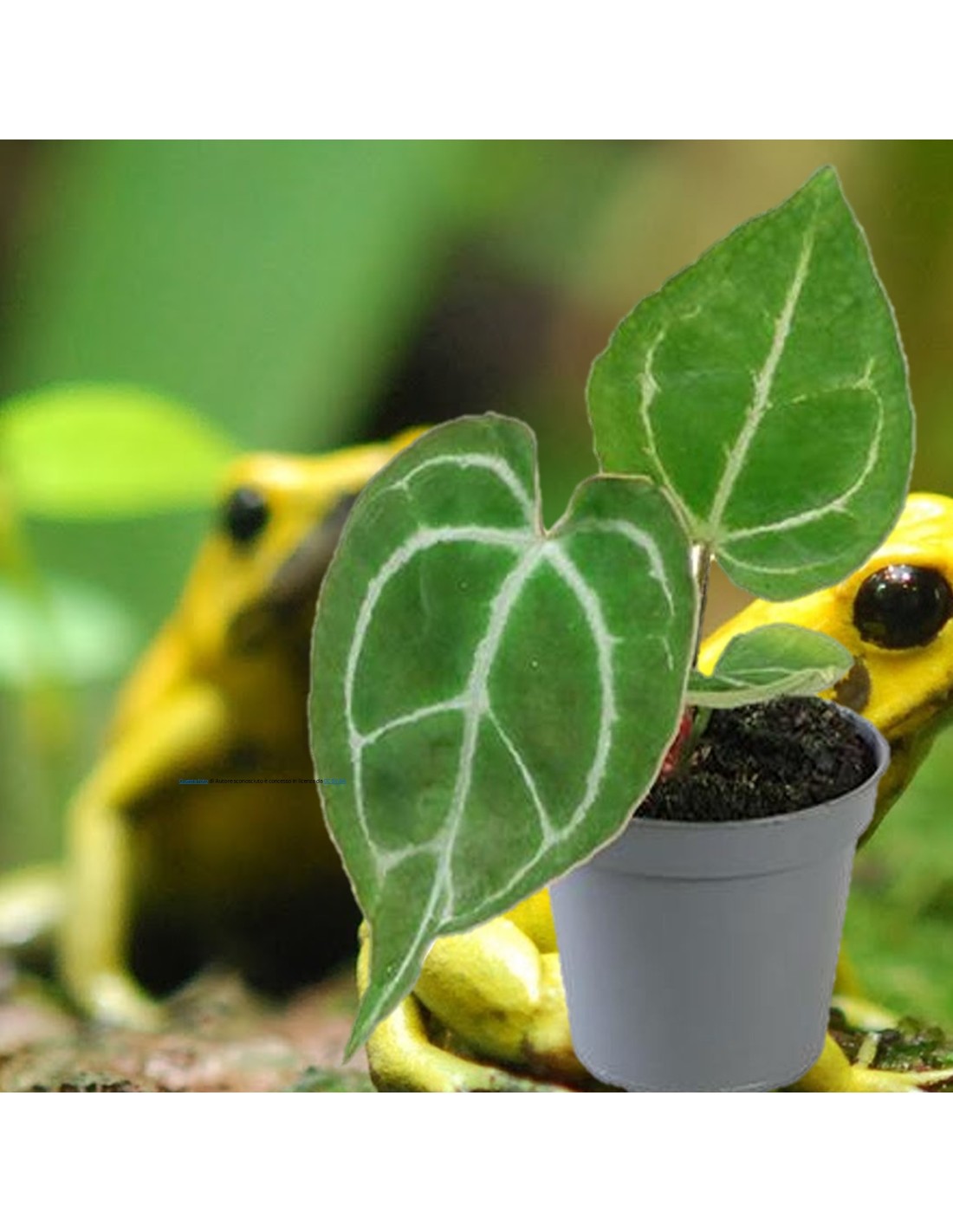 L’Anthurium crystallinum è una pianta tropicale iconica, perfetta per terrari umidi e bioattivi. Si distingue per le foglie vellutate a forma di cuore allungato, attraversate da venature bianco-argento brillanti che creano un effetto "cristallino". È una pianta ideale per anfibi e piccoli rettili arboricoli, offrendo ampie superfici per la sosta e la raccolta dell'umidità, preferendo un ambiente con luce filtrata e un substrato molto poroso.