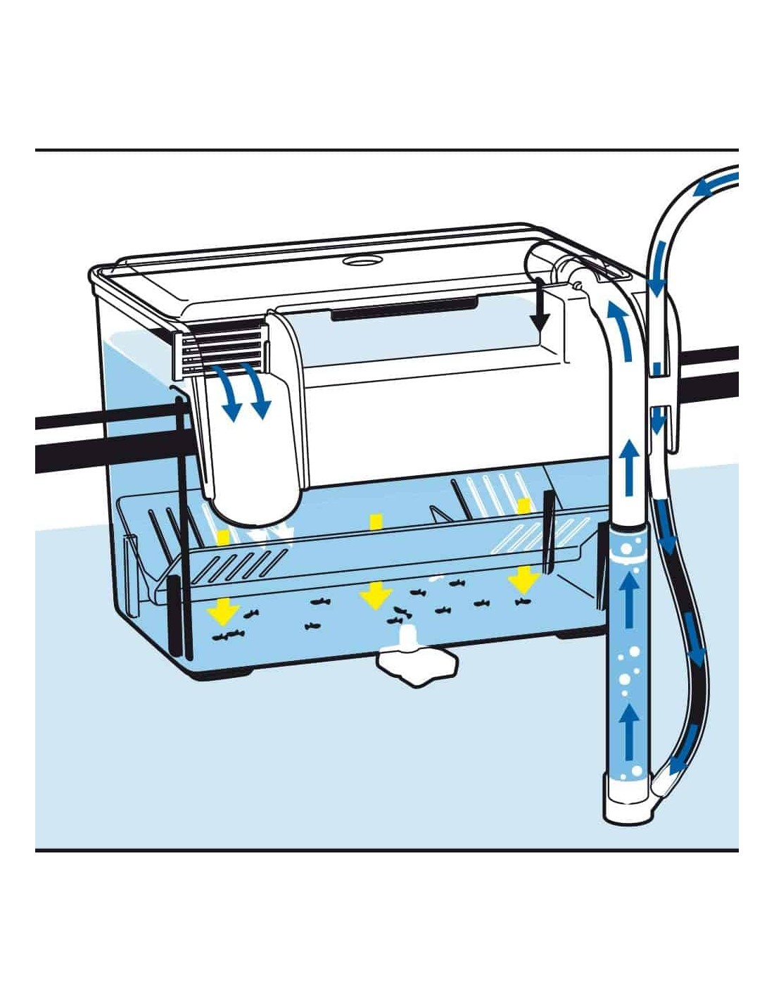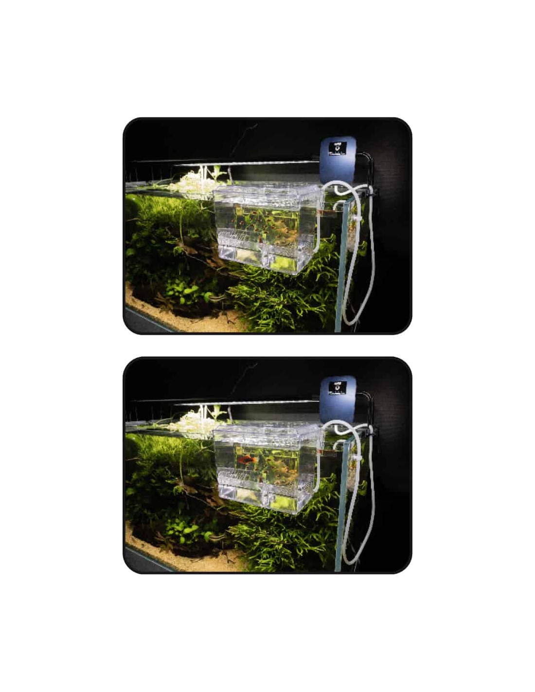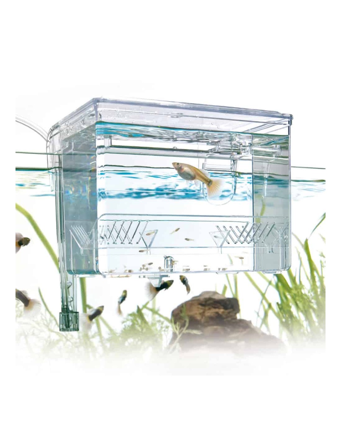 AMTRA SALA PARTO ESTERNA è una vaschetta in plastica esterna ideale per isolare all’interno pesci di piccole dimensioni. Può essere utilizzata sia per la nascita e crescita di avannotti sia per mantenere temporaneamente pesci adulti che necessitano di tranquillità o cure particolari. Se utilizzata come nursery, grazie allo speciale divisorio interno, si può separare una femmina di specie ovovivipara in modo che alla nascita gli avannotti non siano predati dalla madre o da altri pesci. Rimosso il divisorio la vaschetta potrà essere poi utilizzata per l’accrescimento dei pesci stessi. Ideale come vasca di quarantena per la riabilitazione di pesci dopo la guarigione da malattie. Il coperchio in dotazione eviterà che i pesci possano uscire saltando fuori dalla sala parto. La vasca viene appesa esternamente al bordo dell’acquario e mediante un aeratore (non incluso) è possibile far fluire l’acqua dell’acquario all’interno della sala parto garantendo così un ricambio costante e prevenendo l’accumulo di sostanze inquinanti. Misura 16x13x13 cm