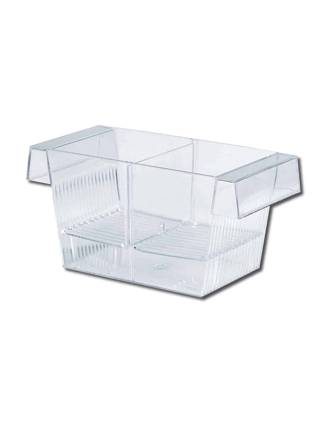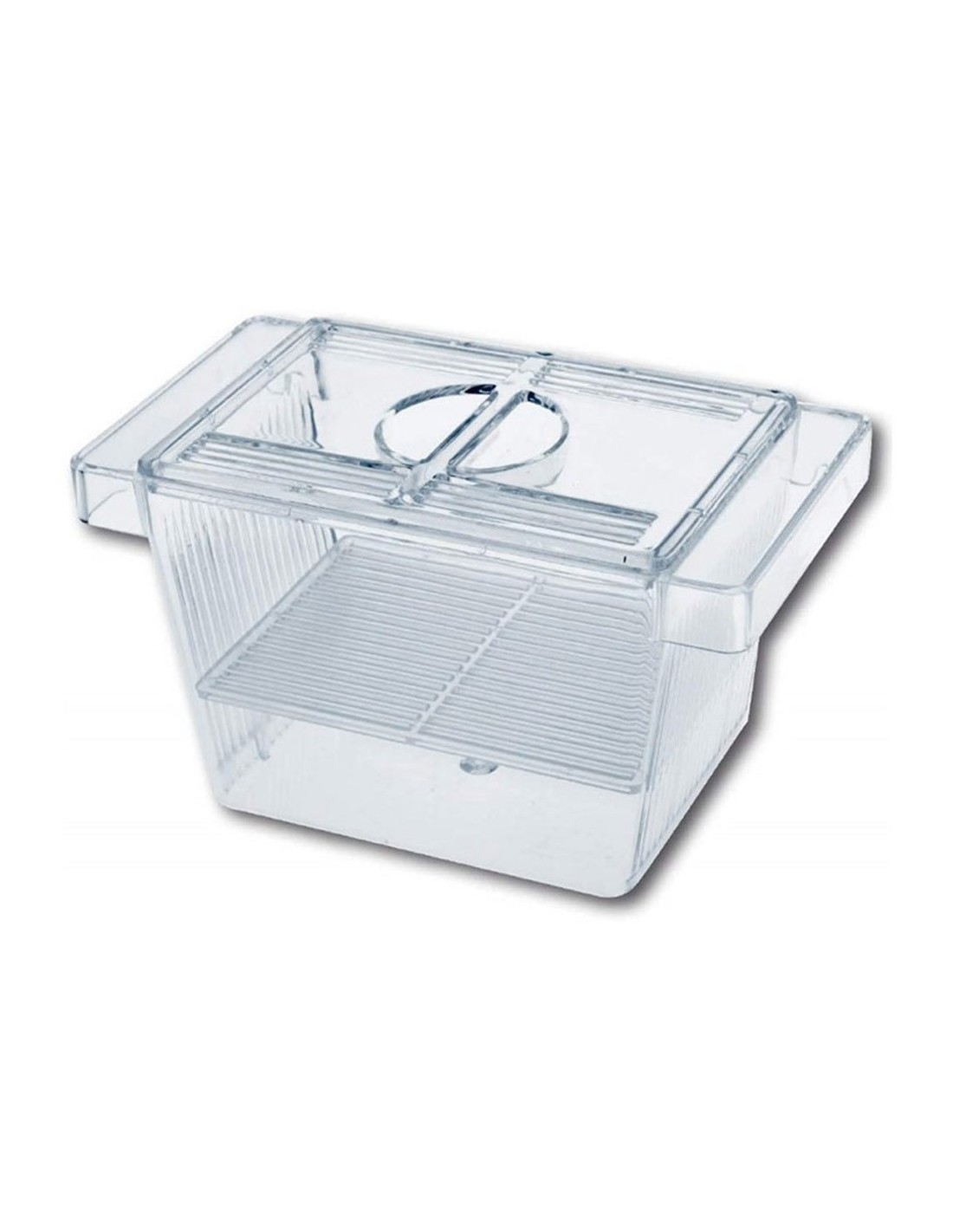 Si tratta di una comoda vaschetta trasparente in cui è possibile isolare le femmine e , grazie alla pratica griglia di fondo interna, separare gli avannotti dai genitori.