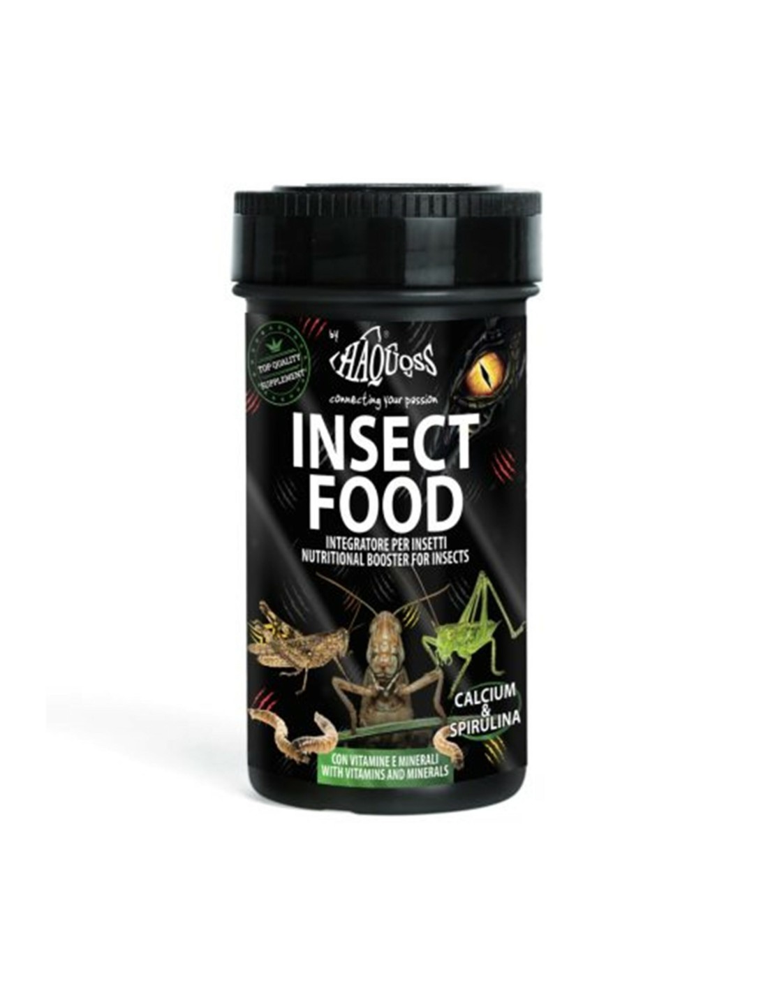 USO : Un cucchiaino colmo ogni 5/6 insetti applicandolo, secco o umido, direttamente sul cibo di base. Si può dosare quotidianamente o anche a giorni alternati.